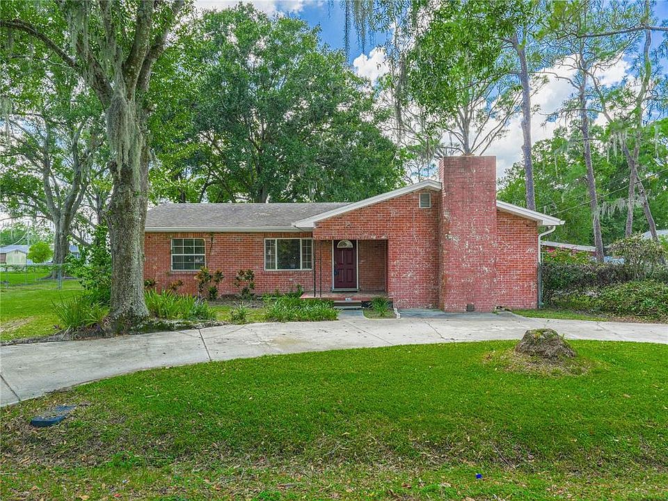 CHARMING 3 BEDROOM 1 BATH HOME ON TRIPLE LOT! (.52 acres). The location of home is walking distance to schools, shopping and restaurants close to Harden Blvd. This home offers a circular drive with plenty of side yard for parking. The chain link backyard is ready for your favorite garden, or plenty of room for outside play area. The additional bonus room could be converted into a bedroom, with plenty of room for large walk in closet in laundry room area OR family room with wood burning fireplace. The french doors lead to screened lanai area. The living room flows to kitchen area with laminate floors. The kitchen includes all appliances, glass tile backsplash, wood cabinets and corian countertops. The center island is perfect for impromptu meals or afternoon homework. The kitchen window overlooks backyard, with views while doing dishes. The two bedrooms share remodeled bath with modern tile walk in shower. Master Bedroom is located in large room with fireplace, closet is shared with laundry room. Don't delay! Call now for your private viewing.