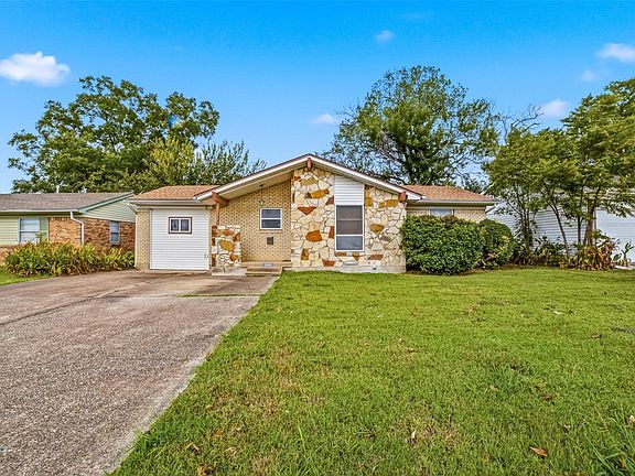 Welcome home to this charming 3-bedroom, 2-bath residence located in the established Northridge Estates community of Mesquite! This well-maintained single-story home offers 1,144 sq. ft. of inviting living space with tasteful updates throughout. The roof was replaced in June 2022, and the foundation was leveled in the fall of 2024 with a transferable warranty for peace of mind. Most of the plumbing and the sewer line have also been replaced. The home showcases original hardwood floors—also found under the carpet in the bedrooms—adding warmth and character to the space. The kitchen features stainless steel appliances, a pantry, and a gas range, while the spacious utility room includes built-in cabinetry and a gas dryer. Additional highlights include gutter covers, an oversized and wide driveway, and a large fenced backyard with storage shed. Please note there is no garage and no existing survey. Conveniently located near shopping, dining, and Mesquite ISD schools, this home combines comfort, updates, and classic charm in one great package! Schedule a showing today!