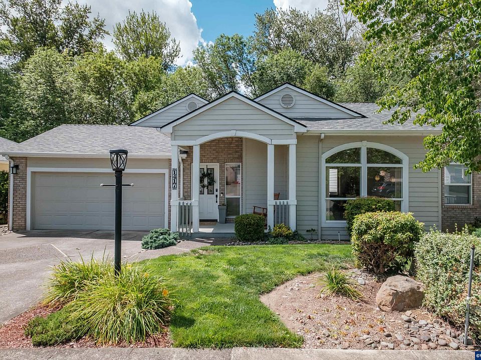 Stunning single-story home with creek on a quiet cul-de-sac! New 2025 roof, designer-inspired wall treatments, updated light fixtures & door handles, vaulted ceilings, multiple skylights & tons of natural light. New Furnace soon! Enjoy two en-suites, open floor plan, gas fireplace, & wainscoting. Private lush landscaping with underground sprinklers, covered entry porch, deck, and walkable path to Orchard Heights Park. Exceptional storage with large under-home and under-deck areas. A rare find with no HOA!
