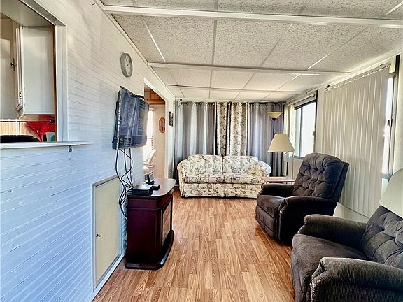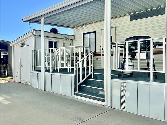 OWN THE LAND! Located in Heritage Ranch highly desirable gated 55+ senior community. Enter the Laytin 1986 home into the living room and delight in its beautiful bright open floor plan & laminate wood flooring throughout. Kitchen open to the dining room with full size refrigerator, free standing electric stove & lots of cabinetry. Bathroom has shower tub combo & vanity area. The Large bedroom has its own entrance/exit. Enjoy a morning or afternoon beverage from your covered porch with stunning views of the mountains. Concrete driveway is big enough for 2 cars along with an improved spacious storage shed WASHER & DRYER INCLUDED. This is resort living at its best, The spacious home offers peace and tranquility and the opportunity to have great gatherings with family and friends. Don’t miss out the opportunity to own this beauty! This property is located near restaurants, grocery shopping, clinics and college. WATER, TRASH, BASIC CABLE TV and INTERNET INCLUDED in HOA monthly fee of approx. $218.00 & LOW TAXES. Community features included POOL, Jacuzzi, walking trails, billiards, shuffleboard, clubhouse, laundry facilities and MORE!! MINUTES From SOBOBA CASINO, DIAMOND VALLEY LAKE, and the 10 FWY, A fantastic opportunity that will not be available for long. Call today for your private appointment to view this amazing property.