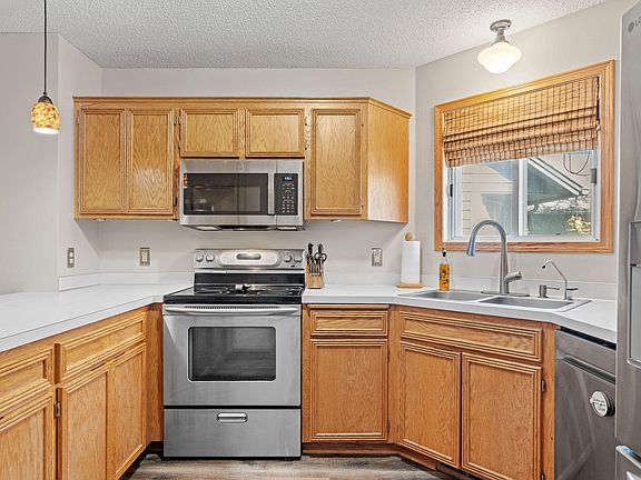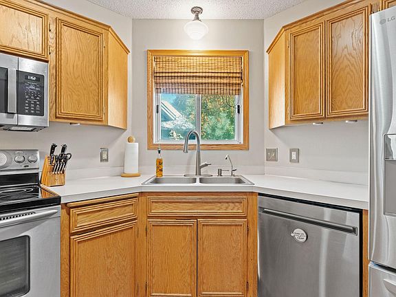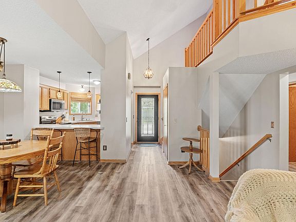 Best of both worlds! This unique 2-story townhome with finished basement offers the perfect blend of one-level living and room to spread out. The main floor features a sought-after layout with the primary suite, a walk-through ¾ bath, and convenient laundry, plus a spacious living room and a bright kitchen/dining combo that walks out to a private deck (stained in 2024). The kitchen boasts a breakfast bar, new refrigerator and dishwasher (2024), new paint throughout main and upper levels (2023), and new flooring throughout the main level (2024). Upstairs, you’ll find a sunny open loft, an additional bedroom, and a full bath—ideal for guests, an office, or a cozy retreat. The finished lower level adds even more flexibility with a family room, bedroom with egress window, ¾ bath, and two large finished storage rooms. Peace of mind comes with numerous updates, including a new roof (2021), exterior paint (2023), water softener (2023), main-level bath upgrades, new air conditioner (2025), outdoor lights with timer, garage door opener, and a smart Honeywell IQ thermostat (2024). Nestled on a private road with mature trees, this home offers a quiet setting with easy access to Cedar Ave, I-35E, restaurants, shopping, parks, and more. A rare opportunity to enjoy main-level living with plenty of extra space and big ticket items already done for you—don’t miss it!