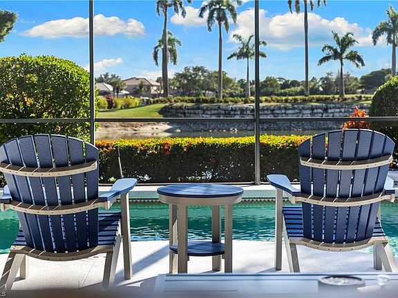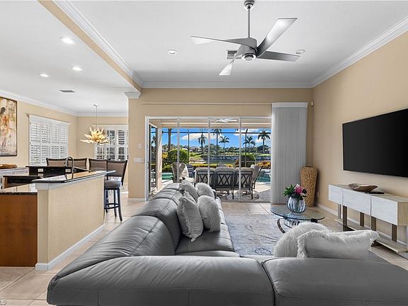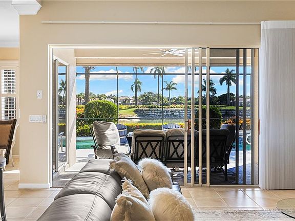Some of the BEST golf and lake views in all of Palmira. This home sits on a premium South facing lot overlooking the signature par three on number eight of the Osprey course, offering a postcard perfect backdrop. The moment you step inside, you are greeted by an open and inviting layout filled with natural light, large windows, and sweeping panoramic views that will make you question why you ever lived anywhere else. The kitchen flows seamlessly into the living and dining areas, featuring stainless steel appliances and built-in cabinetry with ample storage making entertaining feel effortless. Slide open the doors to the screened lanai and step into your own private retreat, where a sparkling pool and spa are framed by lush landscaping, electric hurricane shutters, and breathtaking scenery that will captivate you every single day. The primary suite is spacious and serene, and two additional bedrooms with new carpet offer comfort and privacy for family or visitors. This property has been meticulously maintained with a newer roof, newer air conditioning, crown molding, and high end furnishings. Being sold turnkey, all you need to do is bring your toothbrush and clothes to start enjoying the Palmira lifestyle. As a resident of Palmira, you will enjoy access to world-class amenities at the Renaissance Center Club, including a heated lagoon-style swimming pool, a 75 ft. Olympic lap pool, and a state-of-the-art fitness center. The club also features a restaurant open to all residents, a variety of fitness classes, 8 lighted tennis courts, 5 bocce and 4 pickleball courts, and a spacious dog park. A full calendar of social events fosters a vibrant and active lifestyle, while Palmira’s beautifully landscaped grounds, lakes, rolling fairways, and 27-hole championship golf course provide a serene backdrop for this extraordinary home and community. Schedule your private tour today, and experience this incredible offering in-person.