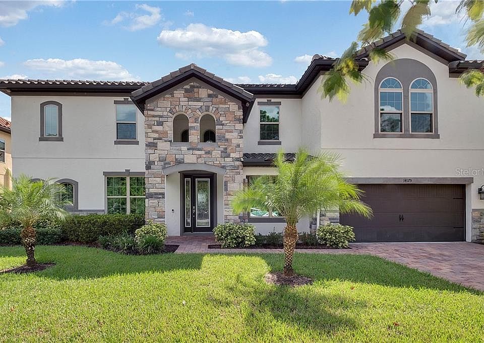 Modern, majestic, and made-to-order - this incredible 4,700 sq ft pool home in Lake Preserve has been meticulously upgraded for optimal comfort, style, and security. With well over $128,000 in decadent upgrades (not including its pool and premium lot), every detail in this home has been stylishly designed and carefully crafted. The kitchen is stunning - with enormous granite-topped eat-up bar, modish backsplash, wine rack, & stainless appliances. The bedrooms are quite spacious, and there are two master suites - one up, one down. From the family room (and lower master suite), gaze out on the sprawling enclosed pool deck with spectacular water views. The pool is all about luxury, with its sun-shelf upgrade and spa with spillover feature. And with four fans under the covered lanai, your summer pool-parties will be cool, no matter the temp! Upstairs, more luxury meets leisure again in the home's huge bonus loft AND home-theater room. This house was built for entertaining! All designer furnishings included! You'll rest easy knowing you're secure, thanks to a built-in security system with multiple cameras. Find all of this in amenity-packed Lake Preserve, with clubhouse, fitness center, a lake with walking paths, fishing pier, & kayak launch. You'll find this dream home near Lake Nona's vast green-spaces, top schools, and easy access to SR 417. Call today to schedule a private tour!