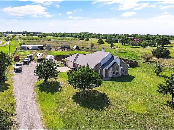 Boasting 3 bedrooms, 2 bathrooms, and a flexible space perfect for a home office or formal dining area, this 1803 sq ft residence is designed for modern comfort. Just few minutes to HWY 5, Shopping and 38 minutes from Frisco, and less than an hour from Lovefield and DFW airports, you'll enjoy easy access to urban luxuries while savoring the serenity of rural life. The property features a 4 stall barn, an attached exterior run with shelter, and a detached loafing shed with 2 runs, offering ample space for your equine companions to roam. With its prime location and exceptional amenities, this horse property is a dream come true for equestrian enthusiasts.