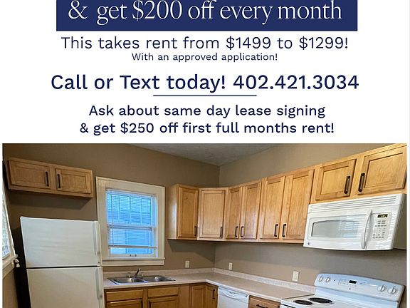 - Exterior features: 1400 square feet, 3 beds 1 bath, Apartment, Electricity not included in rent, Garbage included in rent, Gas not included in rent, Heating system: Forced Air, Lincoln, NE, Online application, Water included in rent