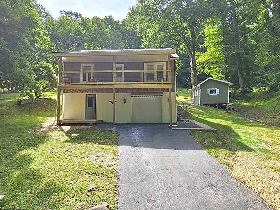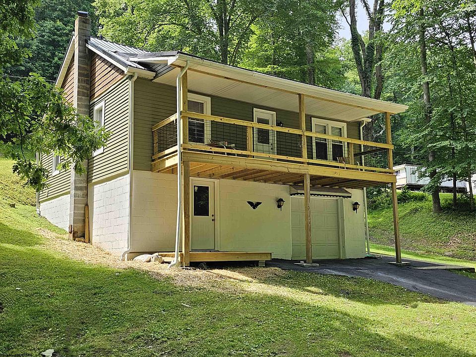 This charming Bunner Ridge home is situated in a park-like setting of over 7/10-acre only 2.8 miles from I-79. The private, covered 10'x20' rear patio faces the woods. 2-bedrooms & 2 baths. The large living room and bedrooms have wood floors. Numerous updates include a new metal roof, siding, paint, carpet on the lower-level game room, and 200-amp service within the last year. 5-year updates include an attractive kitchen with island/breakfast bar; gas furnace; central air; water heater, exterior doors & covered front porch. A wood-burning stove, full bath, laundry and integral garage is on the lower level. This home is well-maintained and nestled in nature.