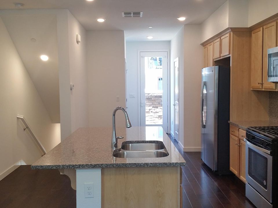 2018-built luxury townhome with attached two-car garage near Great Mall in Milpitas. The townhome has two bedrooms, one full bath and a half bath, and a balcony.