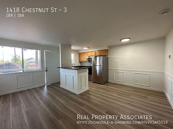 Newly renovated 1 bed 1 bath ground floor unit. Located minutes to I-5 and shopping. Unit has new custom interior paint, wide-plank vinyl floors, updated kitchen and bathroom. This unit is located in a fully fenced building. One parking space is off the alley, additional parking is on street. Owner is looking for a one year lease. Application fee - $45 Pinata - $30.00 per month Water/Sewer/Garbage