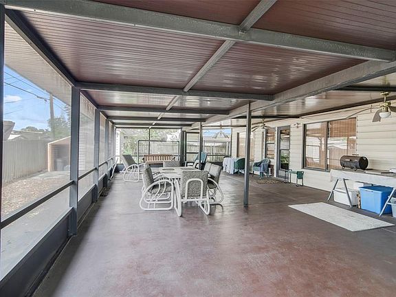 Cozy starter homeMassive screened lanaiNew roofCovered parkingFlexible living spacesLarge florida room