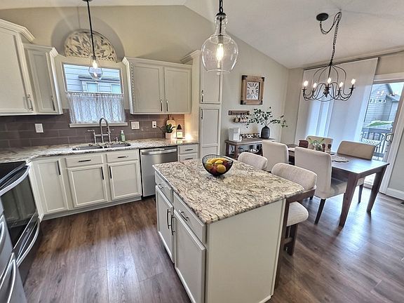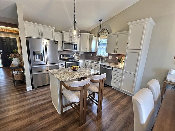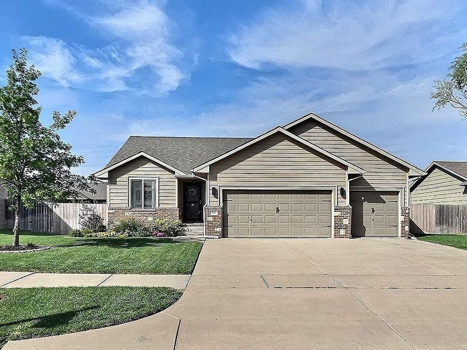 Beautifully maintained 3 bed, 3 bath, 3-car home in the desirable Stone Creek neighborhood of Derby. Built in 2013 and thoughtfully updated throughout. The heart of the home is the spacious kitchen with island, eating bar and pantry, open to the living and dining areas with vaulted ceilings and great natural light. Fresh paint, new trim and durable LVP flooring enhance the clean updated feel of the main level. The primary suite offers dual sinks, separate shower, jetted garden tub and a walk-in closet. Main floor laundry, a second bedroom and an updated hall bath complete the upstairs. The finished view-out basement includes a generous family room with custom cabinetry, a dry bar with brick accent wall and floating shelves, and a custom electric fireplace with lighting and floating mantle. There is also a large multipurpose room currently used as a bedroom, a third bedroom, an updated third bath and extra storage. Enjoy outdoor living with a large fenced yard, deck and extended patio. Sprinkler system included, yard professionally maintained. New fence April 2025. Great location near Rock Road shopping and dining, walking distance to schools, close to two golf courses and a short drive to McConnell AFB. Move-in ready and available to enjoy. Please contact Realtor regarding closing date.