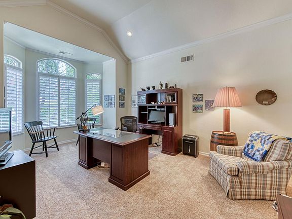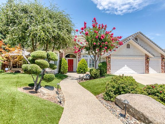 Fantastic location!! Tucked in a quiet cul-de-sac on a large pie-shaped lot in Madison Ridge East, this well-loved 3163 sq ft, 4 BR/3BA Custom home offers you a retreat from traffic and noise, yet it is within walking distance of shopping, restaurants, banks, library, gym and Liberty Elementary. Vibrant crepe myrtle trees and easy-care synthetic grass extend a beautiful welcome, and classic architecture makes you feel at home! Relax and play in this large back yard featuring a solar-heated pebbletec pool, rock waterfall, shady patio with fans, synthetic lawn, fountain, and a generous side yard with an apricot tree and raised veggie garden. The flexible floor plan is perfect for entertaining as well as everyday functionality. It flows effortlessly from the great room, with a fireplace and entertainment center, to the formal dining room with a built-in hutch and butler's pantry/bar for serving. This connects to the gourmet kitchen with an island, granite counters, stainless appliances, pantry, and bay-window breakfast area. Plus, the spacious bonus room can be a formal living room, game room, office or 5th bedroom! You'll love the huge closet in the primary suite, and the elegant bath with a large tub and separate shower. Both the isolated bedroom and remodeled 3rd bath have access to the patio and pool area. A large laundry room has a sink and counter space. You'll find lots of storage above the 3-car garage and in the outdoor shed. This well-maintained home includes a newer AC system and updated solar for the pool. Award-winning Clovis Schools complete the package. This serene oasis is calling you to come home!