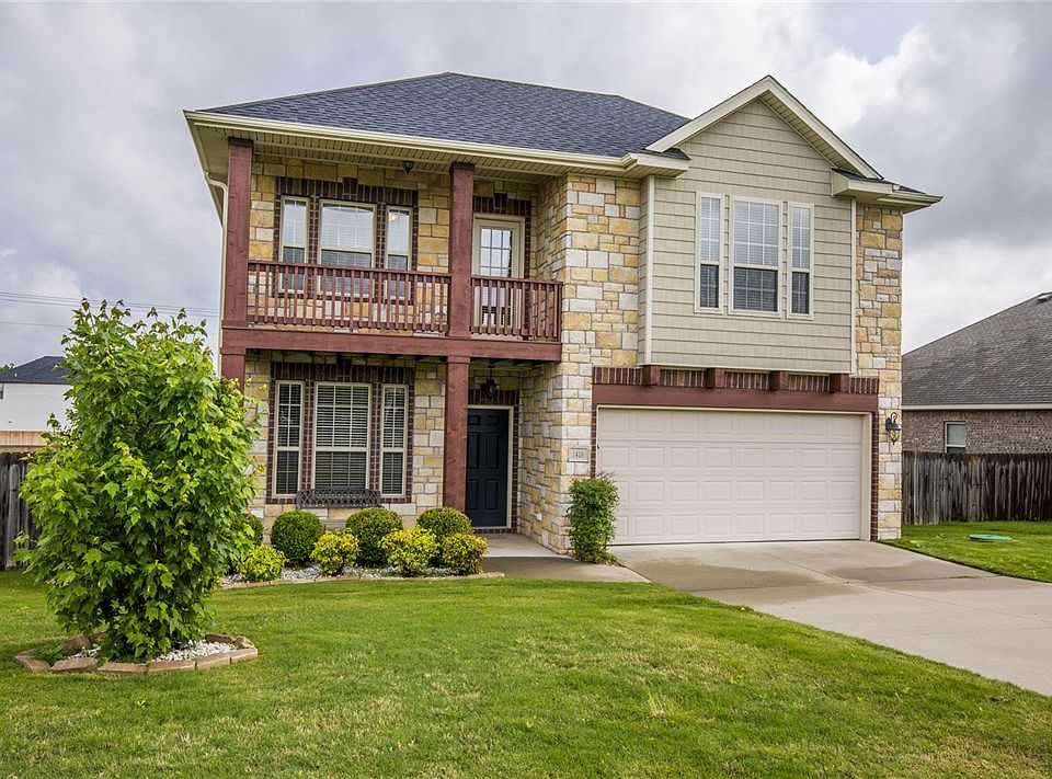 New roof/gutters 2020. New Paint 2020. Great move in ready home. Lovely curb appeal. Open feel home that is worth seeing. You will fall in love the minute you walk in the door. Downstairs features master bedroom and another bedroom which could be used as as office, laundry room, pantry, eat-in kitchen and family room. Upstairs features second living space, 2 bedroom and bathroom. With a front porch and balcony you can't ask something better. Covered deck in the back that seats the family ease. Very conveniently located close to schools, shopping and all luxurious things Northwest Arkansas has to over. Gorgeous home with amazing floor plan. Great neighborhood with excellent community feel.