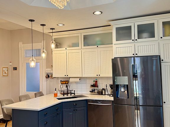 - Fully remodeled kitchen with a massive quartz island (breakfast bar seating), stainless steel appliances, and ample cabinet storage