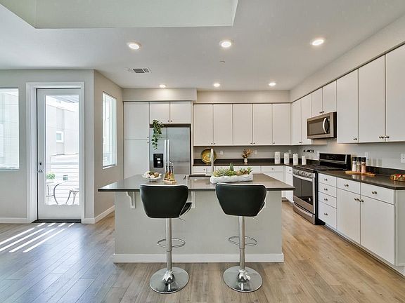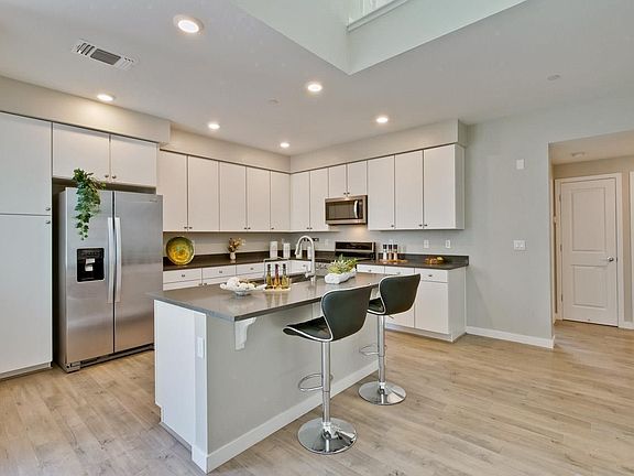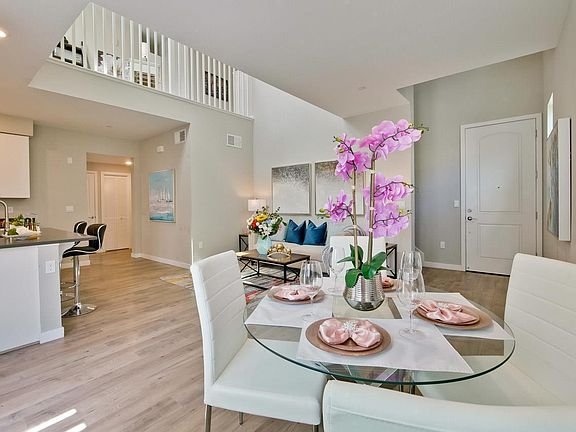 The perfect 2018 built Home! Stunning Luxury condo features 1 bedroom, 1 big den and 2 full bath. The property offers open, high ceiling Living, Dining & Kitchen, leading to a lovely Balcony. The Gourmet Kitchen is a Chef's Dream with Custom Cabinets, Quartz Counters, stainless Dishwasher & built in Microwave. Spacious Layout with plenty of natural lights, tank-less water heater, washer and dryer in unit, elegant modern updates throughout. It also has private Balcony to enjoy the sun and fresh air. Primary bedroom with double sinks and double closets. The den on the 2nd floor can be used as study, perfect for WFH office or gym. Convenient elevator right at your door step, private attached car garage with extra storage space. Bob Mcguire Park right in your backyard with tennis courts, playground, & walking trail. Walking distance to Great Mall, Google & Meta shuttle stops, Light Rail, BART, Stratford. Quick drive to Montague Expressway, highways 01 and High Tech Firms. 1 Car garage including, extra guest parking available to residents. Utilities paid by renter No smoking allowed. Cats OK.