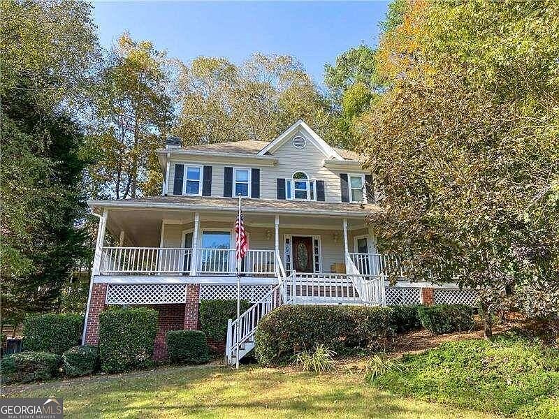 Welcome to Southern Charm living at its finest in Woodstock, Georgia! This home has been featured on House Hunters!! Nestled on one of the most picturesque streets in Eagle Watch, this 4-bedroom country home exudes warmth and hospitality from every corner. As you approach, you'll be greeted by the grandeur of a huge wrap-around porch, perfect for enjoying lazy afternoons in rocking chairs or entertaining guests against a backdrop of southern beauty. Brick pillars support the porch, adding to the home's timeless appeal. Step inside to discover a meticulously updated interior boasting all-new windows and vinyl plank flooring throughout. The main level features a spacious living area, ideal for gathering with loved ones, while the kitchen dazzles with upgraded lighting and fresh paint, creating a welcoming atmosphere for culinary adventures. The charm continues outdoors with landscaped yards adorned with a tranquil rock river in the rear, offering a serene retreat for relaxation or al fresco dining. A drive-under garage provides convenience, with ample space for workshop areas or storage. Escape to the partially finished basement, where possibilities abound for a workout area, man cave, or teen suite, providing versatility to suit your lifestyle needs. Permanent attic stairs lead to additional storage space, ensuring you have room for all your treasures. Immerse yourself in the community's retreat-like living, complete with a vibrant social committee and amenities that rival no other. Whether it's enjoying leisurely strolls along tree-lined streets or taking advantage of neighborhood gatherings, Eagle Watch offers a lifestyle that feels like a perpetual vacation. Don't miss the opportunity to make this home yours, where every detail gleams with charm and southern hospitality, welcoming you to experience the essence of gracious living in Woodstock, Georgia.
