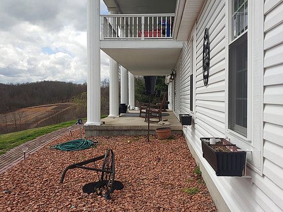 Custom built 5 bedroom, 3 bath well maintained home! Original owner! This 3720 sq ft home is situated on nearly 7 acres and offer terrific views of the countryside. The home offers a large kitchen, dining room, living room, family room, and an owner's suite that could also serve as a mother-in-law's suite. The bedrooms upstairs have window seats and access to enjoy the balconies. There is an attached 2.5 car garage, 26 x 36 detached garage, outdoor kitchen with a wood fired pizza oven, gazebo, waterfall feature, and more. Many recent improvements including 2 heat pumps, 2 french doors, siding & gutters, and many new windows. An additional 49 acres can be purchased with this home.