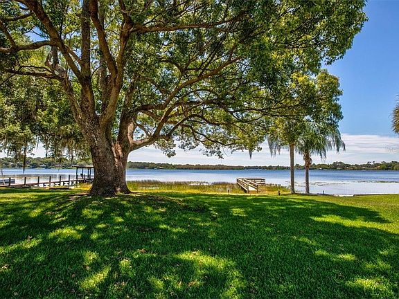 Don't miss your opportunity to have highly sought after Lake Gertrude in your back yard! Tucked away in a quiet neighborhood and situated on .60 acre lot with 109' of lake frontage, this 2 bed/2 bath features over 2,900 square feet of living space. Never miss a minute of the sweeping lake views from the 64' long Florida Room with vaulted ceilings, floor to ceiling windows and French doors that lead out to an open patio and over sized back yard with beach and dock. Gleaming hardwood floors throughout the living and bedroom areas; crown molding and a wood burning fireplace. So many possibilities! Call to see today!
