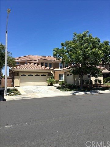 Detached garage for extra storage--(3 total) Courtyard in front of house with stamped concrete Large backyard with dog run on the side Upstair balcony Drought resistant landscape Travertine tiles throughout most of downstairs Travertine tiles in all bathrooms and laundry rooms Travertine tiles in Master Bathroom in shower and on sink counter tops Upgraded carpet throughout entire house Granite countertops in kitchen Bar like island Lots of cabinet space/drawers Each bedroom is very spacious with sliding door closet Master has walk in closet High ceiling throughout house Upstair laundry room
