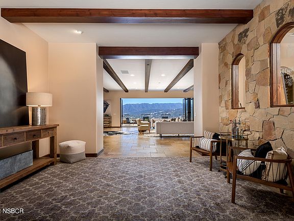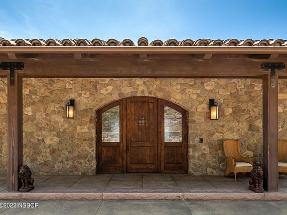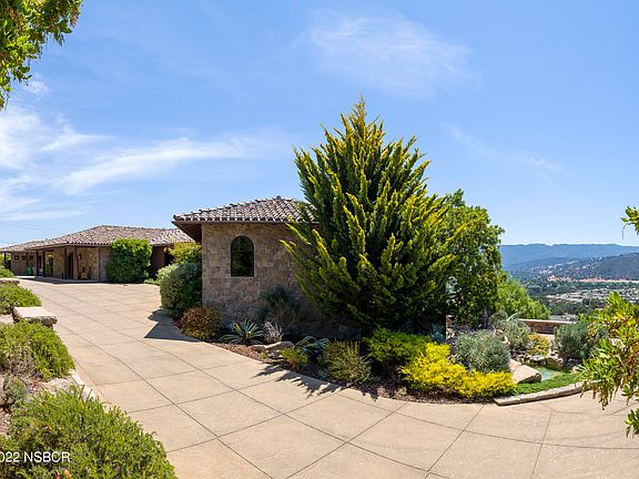 The Ferguson Crest Estate was built by Fergie and her father in 2013. Through this home, Fergie helped her dad realize his dream of planting a vineyard and creating his own wine label that provided many years of memories for Fergie, her family, and those surrounding them. The spa-like estate, with stunning panoramic vistas encompassing The Santa Ynez Mountain Range and much of The Santa Ynez Valley, served as a retreat for family and friends. This beautifully crafted custom estate features a 4-bedroom, 4.5-bathroom turn-key home, +/-5,456 square feet of single level living, and is perfectly sited on +/-6.27 acres. The temperature-controlled wine cellar has been home to a variety of wines created under the Ferguson Crest label including Syrah crafted from the vineyard situated on the property. Large bi-fold doors offer a seamless indoor-outdoor living experience. Generous wrap around patios surrounding the home offer ample space for entertaining or relaxing in an oversized spa near the fire pit and outdoor kitchen. Inside the home you will find two primary suites, one featuring a bar/kitchenette, an expansive great room, two full laundry facilities, numerous walk-in closets offering bountiful storage, and central air conditioning. The gourmet kitchen is a home-chef's dream, featuring a 6-burner Wolf range with griddle and pot filler, a large island and walk-in pantry. Parking is abundant in one of the four garages as well as the various motor courts. Santa Ynez Valley luxury living at its best!