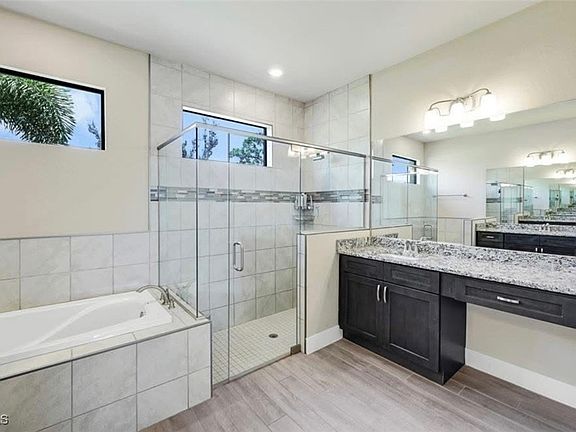 This Home is NOT IN A FLOOD ZONE- Sellers Say..."Make Offer!" Built in 2019, this home is better than new!!!! It's ready to move into, fenced, and landscaped. Ready for you to personalize!! Situated on a large triple lot in a prime location near Trafalgar and Chiquita, this split bed open plan offers style, and convenience. City Water & Sewer (Assessments In Place) just under 1,900 square feet of living space, this three-bedroom, den home, with 3 car garage is ideal for comfortable living. You'll love the modern upgrades throughout, including 12x24 plank tile flooring, high tray ceilings, solid wood cabinets with granite countertops, stainless steel appliances, and 8-foot interior doors. The Master suite is a true retreat, featuring sliders for easy outdoor access, walk-in closets, a spa like bath with double sinks, a walk-in shower, and a soaking tub. The three-car garage and extended driveway offers room for toys or storage! Enjoy the fenced in yard and the outdoor kitchen...Great for entertaining or that indoor outdoor Florida lifestyle. This triple lot has the necessary space for future expansion. The property also includes a backyard private fire pit area. Schedule a showing today!