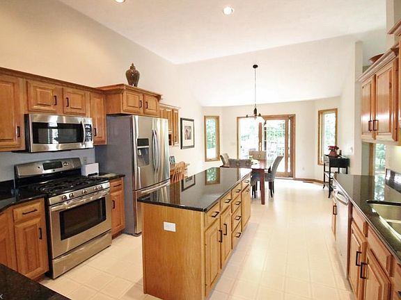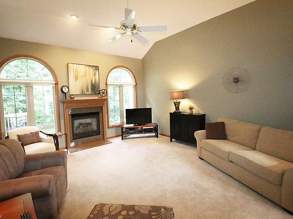 What a gem! Rare to find ranch backing up to trees! Walking in the front door your eyes will immediately be drawn to the vaulted great room with fireplace surrounded by windows on each side. The kitchen with a soaring ceiling boasts granite counter tops, stainless steel appliances, oil rubbed bronze hardware and center island that is open to the bayed dinette area with built-n desk which leads to the deck that overlooks the treed backyard, stone patio and Koi pond. There is a fire pit and storage shed in the backyard. This split floor plan has the master bedroom with sitting area and master bath with whirlpool tub, separate shower, walk-in closet and granite countertop vanity at one side of the home and 2 additional bedrooms, guest bath with granite counter top on vanity and laundry room at the other side. The walk-out lower level has an enormous family room, full bath and bar with sink and under cabinet refrigerator. New geothermal furnace and C/A in 12/2016. Extra unfinished area in the basement for workshop and storage. Utility sink as well. Lots of closets. The garage has wall cabinets, hot/cold water, drain and heater. There is a 45 acre nature preserve with a walking trail in the subdivision. Great place to enjoy nature. Don't miss this home or you will be too late!