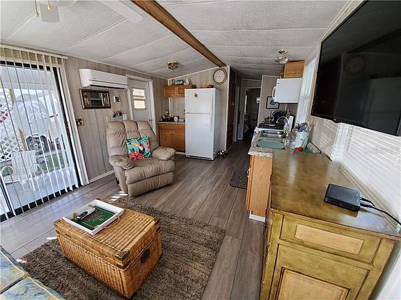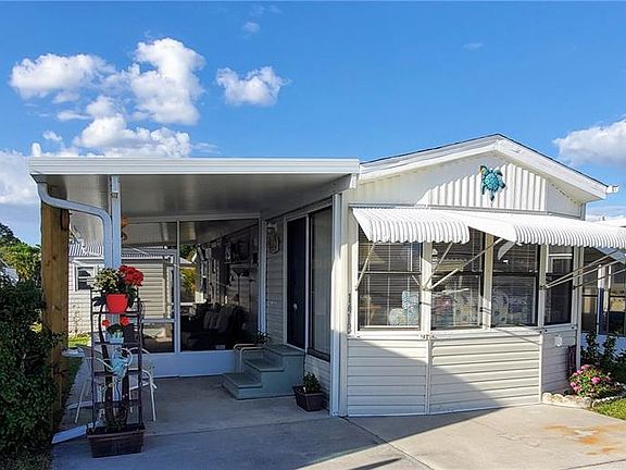 Welcome to Alligator Park you will LOVE this cute Park Model home in this resident-owned 55+ community. This home is beautifully decorated, 1 bedroom 1 bathroom turnkey. There are many updates to include new windows throughout (except front 4), siding and vinyl plank flooring throughout. Plenty of kitchen cabinets and counter space. A newer bathroom vanity and shower tub combo with access from both the hallway and master bedroom. The queen sized mattress is brand new never used; lots of closet and dresser space. There is a newer mini-split AC/heat system with 3 separate zones. Lots of windows throughout the home providing lots of natural lighting. There are 2 flat screen TV's a gas/propane stove in the kitchen, refrigerator/freeze and microwave. Outside is your fully screened in lanai offering approximately 176 square feet with newer screening and windows and roll down shades for a nice entertaining area and another mini-split A/C unit for hot days. This home combined with the screened in lanai area totals almost 600 SF of living space. Outside the rear door of the lanai you will find a nice private patio for bbq-ing, or sitting and the 8x10 shed which has your full size washer and dryer and plenty of storage room. The home offers a nice sized double driveway area, giving you room for 2 vehicles and a golf cart to get around Alligator Park that offers over 50 acres of paved lighted streets along with a 25 acre lake for residents to enjoy fishing and (non-motorized) boating or kayaking. PRICE INCLUDES THE PARK SHARE OF $31,000 and the low HOA fee includes water, sewer, lawn care, community clubhouse, a brand new oversized pool and lap pool, library and more. Alligator Park is close to downtown Punta Gorda a vibrant waterfront community along the Laishley & Gilchrist Parks there is always something to see and do in this quaint town. This home comes completely TURNKEY. Hurry and schedule your showing this won't last at this price!
