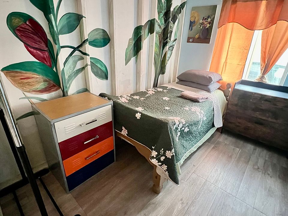 Private furnished room with large windows, shared bathroom. Utilities(water, gas, electricity, trash, wifi) included in the rent. First month rent and half month deposit due at enter. No smoking or marijuana.