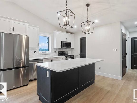BRAND NEW BUILD in Creekside ready for 2026! This can be totally customized to YOUR wants! This fully developed Hiscock bi-level showcases stunning finishes and quality workmanship. High-end vinyl flooring throughout, gourmet kitchen with custom cabinets, stone countertops, coordinating backsplash and stainless appliances including gas stove. Completing the main floor is the open concept living room, dining room, 2 secondary bedrooms and spacious 4pc bathroom. The upper-level houses the absolutely stunning primary suite which includes his/her closets plus additional storage and a 5pc ensuite boasting his/hers sinks, a spacious tiled shower & a separate soaker tub. In-floor heat is hooked up and operational in the primary. The basement is fully developed w/ 2 bedrooms, rec room and a 4pc bathroom all matching the upper levels. In-floor heat is hooked up and operational as well. Prime location close to highway 55 heading to work! Yard will be fenced and sod layed for possession. PHOTOS ARE AN EXAMPLE ONLY
