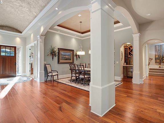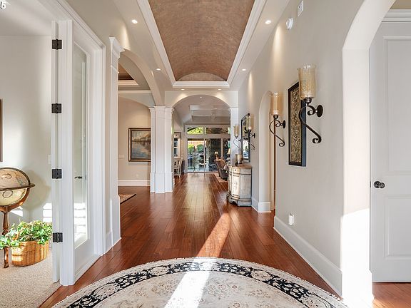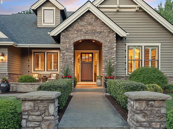 Tucked into an established neighborhood of luxury homes, this award-winning 2011 Street of Dreams property blends craftsmanship, comfort, and flexible living. Thoughtfully designed with main-level living, it features a spacious primary suite with a walk-in closet and direct access to the backyard through a private exterior door. Two additional main-level bedrooms including one complete with a kitchenette, full bath, and patio, perfect for extended guests, live-in help.The formal dining room shines with a built-in buffet and direct access to a bar area, setting the stage for memorable gatherings. Soaring ceilings and a stunning great room create a welcoming heart of the home, while a custom den with built-ins offers the ideal home office or reading retreat.Upstairs, a 4th bedroom or bonus room with full bath, and kitchenette offers privacy and flexibility, ideal as a guest suite, media room, or bonus space.Step outside to a show-stopping vaulted covered patio with outdoor fireplace and built-in grill. Perfect for entertaining year-round. A 4-car tandem garage with epoxy floors and backyard storage shed complete the package.This home has been lovingly maintained and is ready for its next chapter. If you’ve been waiting for something truly special, this is it.