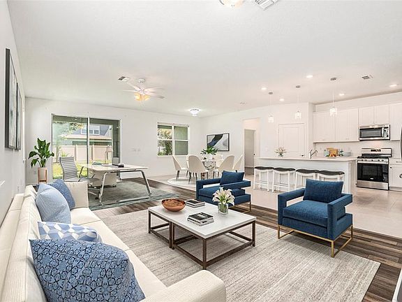 Priced to sell! Newer construction with new appliances. This stunning 4-bedroom, 3-bathroom residence was built in 2024 —offering the perfect blend of modern style, comfort, and functionality. Three-way split bedroom layout, providing privacy and space for the whole family. The home features wood-look laminate flooring in the main living area, tile throughout, and cozy carpet in the bedrooms. The heart of the home is the open-concept kitchen, living, and dining area, perfect for entertaining or everyday living. The gourmet kitchen is a chef’s delight, boasting quartz countertops, a large center island with seating and prep space, and stainless steel appliances—including a gas range. Enjoy seamless indoor-outdoor living with sliding glass doors that lead to a spacious covered patio, ideal for relaxing or hosting guests. The private primary suite is tucked at the back of the home and features a luxurious en-suite bathroom with a dual-sink vanity, oversized walk-in shower, private water closet, and a large walk-in closet. Two of the generously sized bedrooms share a full bath with a tub/shower combo, while the fourth bedroom offers added privacy with its own en-suite bathroom. Ideally situated near top-rated Hillsborough County schools, shopping, dining, and major highways, this location offers a quick and easy commute to Tampa and surrounding areas. Schedule your private showing today!