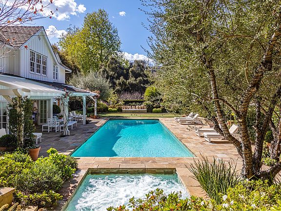 An estate designed with exceptional craftsmanship and meticulous attention to detail, just minutes away from Malibu and a short drive to the city. The compound is tucked away in total seclusion with its stately presence, offering a main residence, 2-story pool house, additional guest house, wine cave, and stunning landscape perfectly situated in the Pacific Palisades. Built as a farmhouse with a modern sensibility, this incredible property offers breathtaking moments at every turn. This seven-bedroom, eleven-bathroom estate has been re-imagined by a team of celebrated designers. Situated apart from the main residence, the two-story pool house boasts a sophisticated living room with a wood-burning fireplace and a chef's kitchen that opens to the outdoor space for seamless indoor outdoor entertaining unlike no other. Upstairs, two private guest suites create a tranquil escape with breathtaking scenery, offering a stunning space for your guests. Built on over an acre, the grounds are as thoughtful as the interior design, including an alfresco kitchen situated under a canopy of olive trees, multiple fireplaces to gather, an oversized pool, a bocce ball court, and an organic vegetable garden all surrounded by fruit orchards and mature specimen trees.