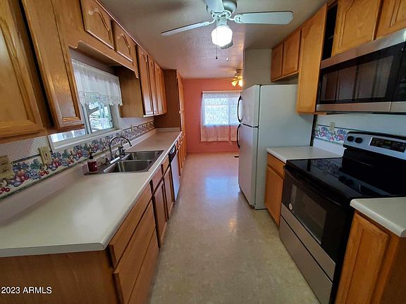 Are you ready to leave Phoenix and the 115° temps? Here's your chance! This remodeled 2 bedroom/2 bath that is located in Mayer has many nice additional features such as dual pane windows, newer counters, an abundance of oak cabinets, covered front and rear porches, workshop, large 2 car carport, shed, washer/dryer, refrigerator, fencing for your dogs, backs to state land, fruit trees, mature shade trees, newer roof, and will have a new range, microwave, and dishwasher as well! Conventional, FHA, and VA financing! 45 minutes from North Phoenix and 30 minutes from the Prescott Courthouse Square! Getaway from Phoenix to cooler temperatures and cleaner air!