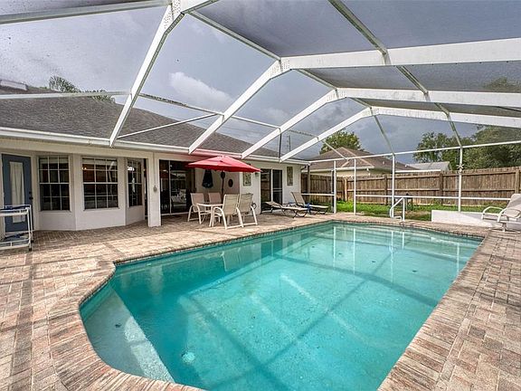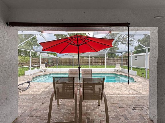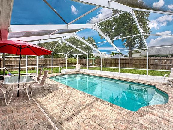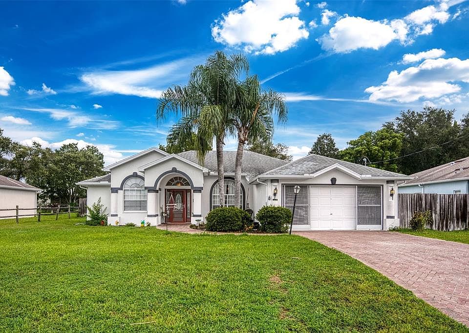 BACK ON THE MARKET!!!!! Financing fell thru, appraisal came back good. Don't miss your opportunity for this meticiously maintained and updated pool home that offers the ideal Florida lifestyle. It is nestled in the heart of numerous amenities, just minutes away from shopping, dining and a community park complete with a new splash pad, perfect recreation for all ages. New water heater 2022, HVAC 2024, septic 2024 and new fans. As you enter into the great room with vaulted ceilings and lots of natural light, tile flooring your eyes are drawn to the breathtaking view of the screened in saltwater pool. The dining room has an oversized window allowing natural light, leading to the kitchen with granite counters, stainless appliances including double oven, dishwasher, microwave perfect for family gatherings. Master suite with walk-in closet, seperate shower and jacuzzi tub perfect for unwinding after a long day. Second bathroom has a disabled tub ensuring accessibility for everyone. Home has 2 car garage with epoxy flooring,built in shelving and workbench. Back yard is fenced with shed on concrete slab and electric. Access to the Suncoast Parkway 1 mile away. No HOA.