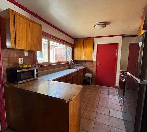 Beautiful Single Story Home 4 Bedrooms, 3 Bathrooms, currently being used as a Duplex but can be easily converted back to the Single Family Home, 2 Separate Entrances, 2 Kitchens- Fireplace in the Living Room in front unit -Back Yard with Fruit Trees, one Car Garage, Gated! Move-in Condition- Come to see it before it is gone!