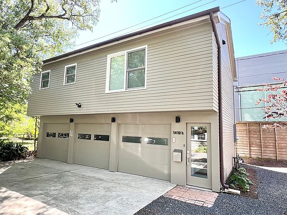 Elegant recently renovated 1/1 garage apartment w/ studio / study downstairs across from Menil Park! Many custom details throughout, Bright living area with vaulted ceilings and skylights, beautiful white oak hardwood floors, lots of natural light, kitchen features quartz countertops, stainless steel appliances and undercabinet lighting, bedroom features recessed lights and good closet space, downstairs functional living space may be used as a studio / study or garage parking, very unique and apartment home in a one of kind location!!