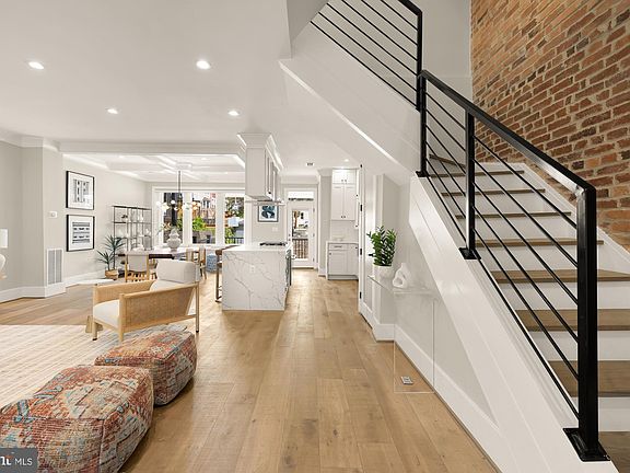 Completely reimagined and meticulously renovated, 1419 Buchanan St NW is a showstopping rowhome that blends timeless architecture with fresh, modern design in the heart of 16th Street Heights. Set behind a classic brick façade with bold black trim and a welcoming front porch, this home opens to a stunning interior filled with light and layered in luxury. The open-concept main level features wide-plank white oak floors, soaring ceilings, custom Hunter Douglas window treatments and exposed brick accents that's a nod to the home’s historic character, while offering the perfect canvas for contemporary living. The chef’s kitchen is the true heart of the home, anchored by a dramatic waterfall-edge island, custom shaker cabinetry, quartz countertops, and a full suite of stainless appliances including a gas range, custom range hood, and a french door refrigerator. The coffered ceiling elevates the spacious dining area, flanked by oversized windows and glass doors that lead to a rear deck, fenced-in patio, and secure parking. Upstairs, the sunlit primary suite is a calming retreat with leafy views, ample closet space, and a spa-like bath featuring a walk-in shower, freestanding clawfoot soaking tub, designer tile, and a statement chandelier. Two additional bedrooms, a second and third full bath as well as convenient laundry complete the upper level. The fully finished lower level, with private front and rear entrances, offers a flexible space ideal for a guest suite, rec room, playroom, or work-from-home setup, and includes a full bath and wet bar rough-in. Tucked on a tree-lined block just minutes from Upshur Park, Sherman Circle, Zeke's Coffee, Timber Pizza, Cinder BBQ, Loyalty Books, and the Metro, this one has it all: style, space, and an unbeatable location.