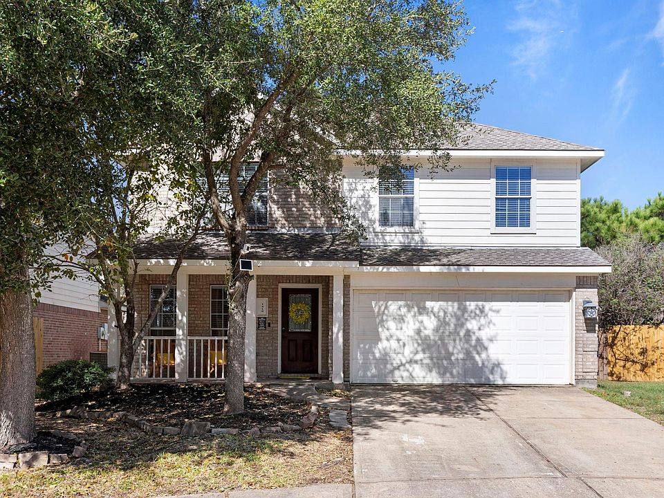 Great location and lots of space! This 5 bedroom, 2 and 1/2 bath home is located in a cul-de-sac in the Highland Glen subdivision just off Hardy Toll Rd. The primary bedroom and en suite bath are located on the first floor. Four additional spacious bedrooms plus an open game room and full bath are located on the second floor. The kitchen has a custom feature wall, granite counter tops, center island, gas range, dining space combo, and a bonus nook for a small desk or coffee bar. Updates include: Roof 2021, AC compressor 2025, Garbage disposal 2025, Furnace 2024, Dishwasher 2024, Fence 2023 and new carpet in one secondary bedroom. The garage has a mini-split unit for climate control. The backyard includeds a covered porch area and a storage building.