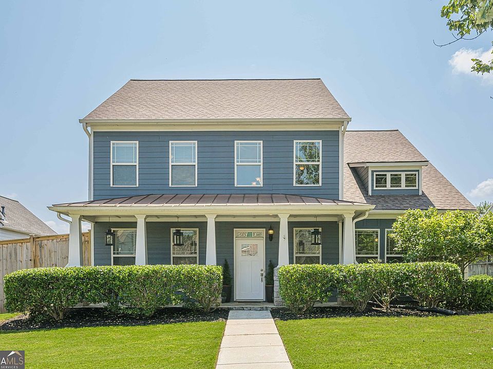 An absolutely stunning Craftsman style home in an amazing Swim/Tennis/Clubhouse Community, minutes from Historic Downtown Braselton! Featuring a great mix of functional spaces and stylish upgrades, this home provides a great opportunity for entertaining with both casual and formal flair. Walk in through the two-story foyer off the completely covered front porch, formal dining room is open to foyer with hardwood flooring, gorgeous trim package that features tall judges paneling with shelving ledge. Great lighting throughout this home with transoms and upgraded lighting fixtures! Completely remodeled and upgraded kitchen with white cabinets that have functional pull outs! Gorgeous leathered granite island which is oversized and has seating area. Wine/drink cooler built in, tile backsplash, farm sink, gas stove and the under and over cabinet Heu Lighting and recessed lighting make this a chef's dream. But there is more! All that opens to an eat-in kitchen with double doors leading to the concrete/stone patio and backyard with wood privacy fence! Two story great room featuring a gas log fireplace with glowing embers adds to the open concept and features double doors to the patio. Primary bedroom on the main level is oversized and bath features double sinks, jetted tub, separate shower and a perfect walk-in closet. Upstairs features a versatile loft which has a walk-in closet. Great second den, office or a future 4th bedroom. The two additional bedrooms have walk-in closets and ceiling fans. Hall bath with double sinks also opens to one of the bedrooms making it a perfect suite! The Falls at Braselton is an active community featuring swim/ tennis/ clubhouse and The Braselton Trolley can pick you up at the clubhouse on weekends and take you to Historic Downtown Braselton for great restaurants, shopping, parks, splash pad and more. Of course, you could use your Golf Cart as well! Don't miss this opportunity to just move in and enjoy your NEW HOME and the Community of Braselton.