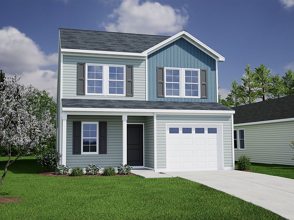 The Evans plan is a two-story home with four bedrooms and two-and-one-half bathrooms. The kitchen, eat-in area, and vaulted great room follow an open concept. The primary suite is on the main level and has a walk-in closet, a spacious bathroom with dual vanities and a separate tub and shower, and a linen closet. A laundry room is also located on the main level for added convenience. Upstairs, there are two additional bedrooms, a bonus room with a closet, and a shared hall bathroom. Off of the great room, a covered back porch with a storage closet leads to the backyard. Come see the Evans plan today!