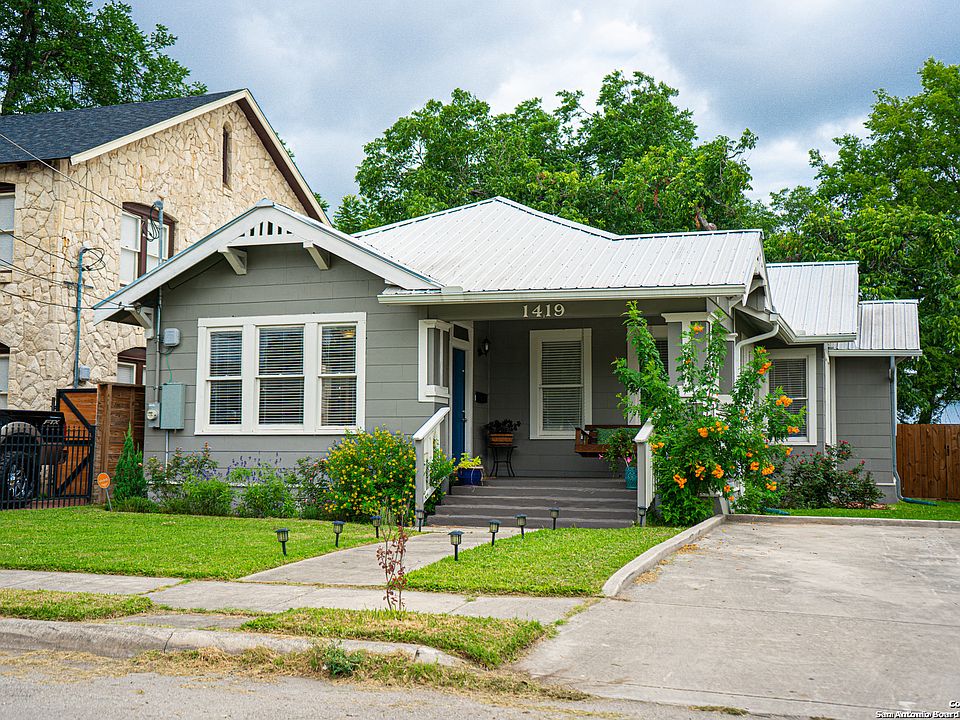 Downtown San Antonio,"Dignowity Hill", Craftsman Style architecture, recently remodeled 3/2 approx 1,710 sq. feet, One Story, metal roof, Foundation recently releveled, original hardwood flooring and updated ceramic tile flooring, approx. 42" upper Kitchen cabinets with decorative pulls and granite counter tops, pendant lights, stainless steel appliances, breakfast bar, ceiling fans, decorative recessed lighting, Master bedroom with multiple closets, large utility room with mop sink/ pantry, nice treed and peacful back yard and relaxing front porch. Less than 3 miles to Fort Sam Houston/Joint Base San Antonio, less than 5 miles to NAVOPSPTCEN, 8 miles to Brooks City and about 15 miles to Lackland Air Force base.