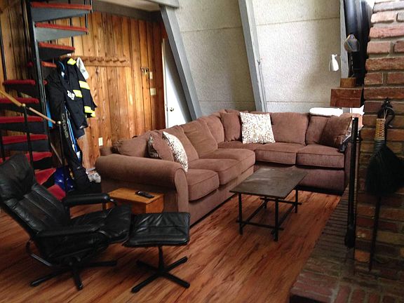Hill-top getaway at Peek n' Peak Resort. This chalet style A-frame provides the best of all-season enjoyment. It is perfect for golf lovers, down-hill and cross-country skiers, or snowmobilers. This cozy hill-top getaway is set on an extra-large, beautifully wooded, double lot of land about 1 acre. (2 lots, deeded separate). Located directly on the first hole of the beautifully maintained PGA championship upper golf course and a short walk to the club house and down-hill ski runs. Even closer, you can shuffle directly across the street to the best groomed cross-country trails. For Snowmobilers, you can easily access the extensive trail systems and there is plenty of parking for the sleds in the detached barn and space for your trailer. The Peek’n Peak resort is all newly renovated and there is a brand new Aerial Adventure tree’s Course and Segway tours and put-put golf offered at the base of the ski resort. This three-bedroom has the master bedroom in the loft of the A-frame and the two main-floor bedrooms each have bunk beds. The Great Room faces a large brick wood-burning fireplace, a large deck, views of the water and 1st hole tee box. There is shower and a double sink in one room and a separate bathroom with toilet and sink. (This bathroom configuration is great when there is a large group.) There is a full, shallow basement with an outside entrance.