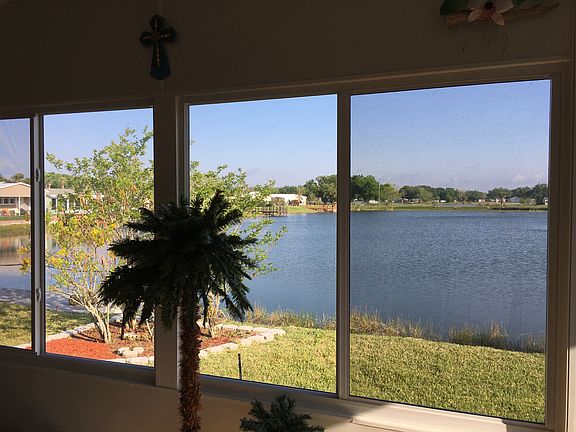 Palm Village- 55+ Community. Waterfront 3B 2B with a view that's breath-taking! Enclosed Fl room with glass sliders. Large screened porch w/utility room and a huge shed. Plenty of parking (Pavers) for trucks & Boats or cars.