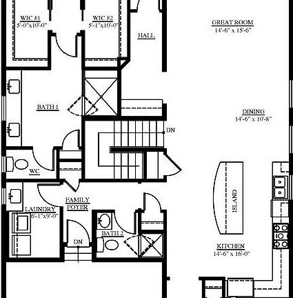 Family roomOversized kitchen islandOpen floor planLaundry roomCustom cabinetryDining roomOak hardwood floors