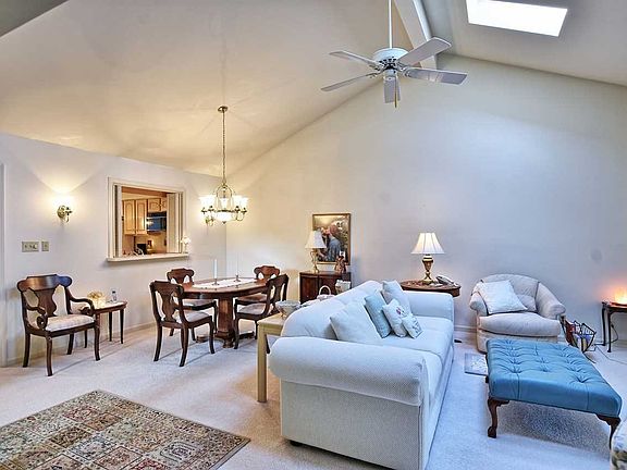 Welcome to carefree condominium living at Timberlake! Located on Evansville's north side, just minutes from shopping and the conveniences of city life, yet offering a country setting with walking paths through wooded surroundings, and a lake containing a peaceful water fountain. This well cared for one owner ranch condo home has a hardwood foyer that leads to the vaulted ceiling Great Room with Dining area and skylights that create a huge room ideal for entertaining. The Sunroom with skylights provides easy flow and more open gathering space, and leads to a deck with a view of the woods. The Master Suite has a garden tub, shower, and large walk-in closet with lots of shelf space. Two guest bedrooms, and a hall bath that is connected to the third bedroom. There is plenty of closet and storage space. The furnace and water heater were replaced in 2017. The monthly dues cover the grounds and lake, and the buildings including the gutters, roofs (not skylights), glass, mailboxes, and termite prevention. Home warranty included.