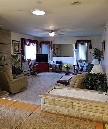 Great bones & tons of potential in this nearly 1700 SqFt ranch. Open floor plan w/sunken living room has floor to ceiling flagstone fireplace, LR opens to DR & KIT, FR w/sliding doors opening to covered patio & back yard, storage room off FR w/separate exterior access could easily double as home office or related living. Full basement w/ kitchenette & rough in bath could be great for entertaining. Tons of storage including pull down stair to attic. Shed attached to house & an additional detached shed, 2 car attached garage w/newer overhead door, nearly 1/3 acre lot w/fully fenced back yard, low maintenance exterior w/aluminum soffits, fascia, gutters & new roof in '15. Water heater & boiler'14, some updated electric '15. Sold As-Is but would be a great candidate for FHA re-hab financing to bring this beauty back to life & get new appliances and/or "wish list" items - ask your Realtor for details about this & down payment assistance programs. See captioned pictures for more details.