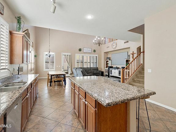 Beautiful 4-bedroom, 3-bath home in Homestead Park subdivision in Chandler near Intel! The home features plantation shutters throughout and a spacious kitchen with granite countertops, island, ample cabinetry, and stainless steel appliances. The primary suite is conveniently downstairs, along with a versatile bonus room—perfect for an office, gym, or hobby space. Upstairs you'll find three bedrooms, two full baths, a large loft, and laundry room. The backyard offers a covered patio and a generous grass area, with winter grass recently planted and coming in lush.