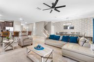 - Built-in Features, Ceiling Fan(s), Eating Space In Kitchen, Living Room/Dining Room Combo, Open Floorplan, Primary Bedroom Main Floor, PrimaryBedroom Upstairs, Stone Counters, Thermostat, Walk-In Closet(s)
