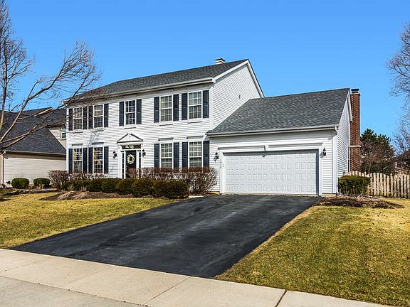 Colonial home in quiet suburban community partially surrounded by forest preserve, w/tree-lined circular bike trail featuring two parks & soccer field. Enter into a 2-story foyer that extends a warm welcome & many upgrades incl. new furnace, water heater, sump pump, carpeting & roof. Entertaining is easy w/many options, from the spacious LVR adjoining the formal dining room, to the light-filled kitchen w/wood floors, center island, granite counters, walk-in pantry, casual dining area & direct patio access. The cozy family room showcases a wood-burning fireplace that becomes a central gathering place. A graciously appointed master w/ luxury ensuite pampers w/double sinks, soaker tub & separate shower. The finished basement boasts rec room, exercise room & cedar closet. Private fenced backyard w/concrete patio.