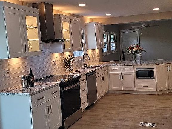 This 3BR 2 full BA house has been beautifully remodeled from top to bottom with Nucore Luxury flooring throughout, new drywalled ceilings with LED recessed lighting and ceiling fans, new Sherwin-Williams paint throughout, beautiful custom kitchen with soft close doors and drawers, glass doors with inside lighting, under cabinet lighting, above cabinet lighting, granite counter tops with overhang for bar stools, stainless steel sink, garbage disposal, Moan faucet, all brand new stainless steel appliances, elegant stainless steel and glass hood vent above stove, new interior doors and upgraded trim, open concept family room that's great for entertaining, electric fireplace, dining room off kitchen, master bedroom with ensuite bathroom, master bathroom with new upgraded tile in shower, new toilet, new vanity, 2 nice size bedrooms with new ceiling fans, main bathroom with bathtub and new upgraded tile walls, new toilet, new vanity, laundry room, central air, gas heating, new patio door, fresh stained deck, large flat fenced backyard with shed, spacious 1 car garage with electric opener, insulated garage door with glass, brand new cement driveway and nice landscaping. 2 minute walk to beautiful Quinn Park. Close to Makino Park. A few minutes to shopping, dining and major highways. No HOA Mason School District