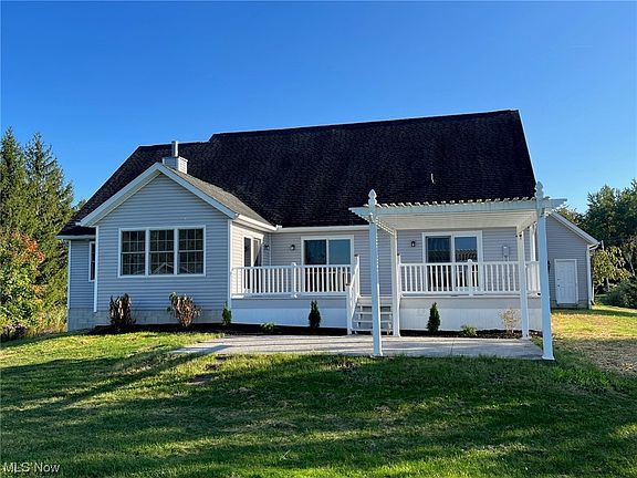 Beautifully Maintained 3 Bedroom & 2 Bath Ranch set on 3+Acres! This home offers great living space with open concept living and recently updated with freshly painted interior, new lighting fixtures and all new carpet & luxury vinyl flooring throughout. Covered front porch welcomes you into the open Dining Room & Great Room combination with fireplace. Spacious Kitchen with Corian counters, breakfast bar, pantry & stainless-steel appliances open to dining area. Bright & light vaulted Family/Sun Room with sliders to composite deck and stamped concrete patio with pergola overlooking expansive backyard. Retreat to the large Master Bedroom with walk-in closet and deck access. Master Bath with double sink vanity & oversized shower. 2 additional Bedrooms with full bath to share. Central air. 1st floor Laundry. You can easily finish the full walk-out basement and double your living space, it is also plumbed for 3rd bath. Home is wired for generator. 2+car 34x22 attached garage has extra space for workshop area or room for 3rd vehicle. Nicely landscaped yard with 20x24 pole barn/outbuilding. Move-in Ready! Chardon Schools.